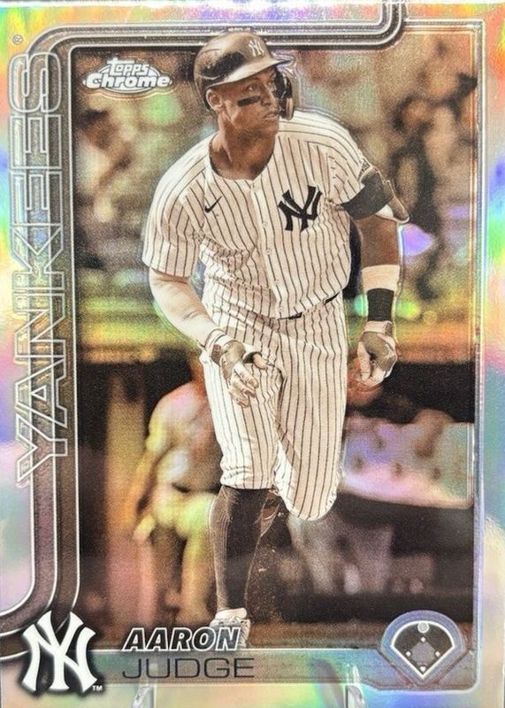 This card is 1 of 159 Aaron Judge's card variations in the 2025 Topps Chrome set being tracked by Sports Card Investor, including Base, Geometric Refractor, Image Variation, Lightboard Logo Variation, and Negative Refractor.