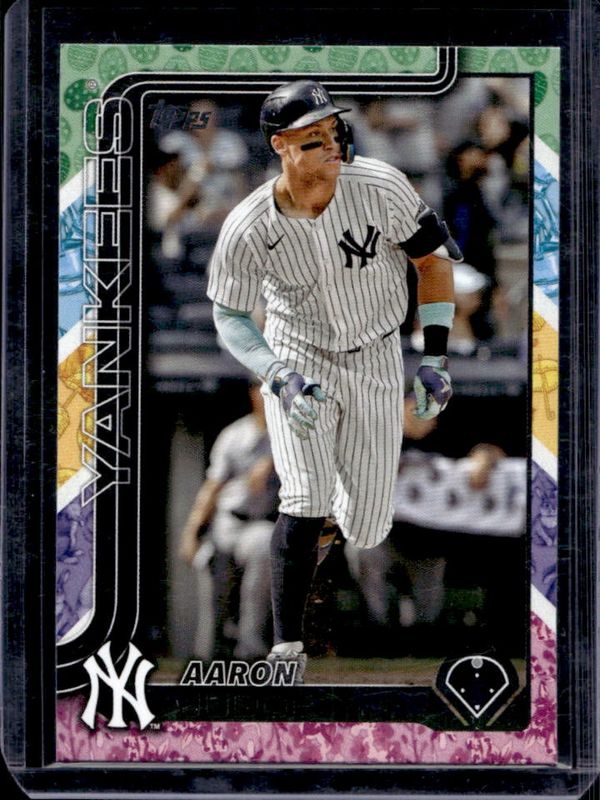 The Aaron Judge 2025 Topps #300 Easter Holiday Tin Border card is 1 of 319 Aaron Judge's card variations in the 2025 Topps set being tracked by Sports Card Investor, including Base, Aqua Holo Foil, Diamante Foil, Holo Foil, and Pink Diamante Foil.