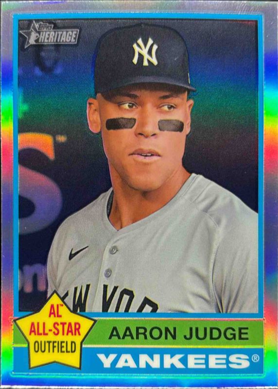 The Aaron Judge 2025 Topps Heritage #380 Chrome - Red Refractor card is 1 of 65 Aaron Judge's card variations in the 2025 Topps Heritage set being tracked by Sports Card Investor, including #380 Base, #3 Base, #3 Alternate Cartoon Variation, #3 Black Border, and #380 Black Border.