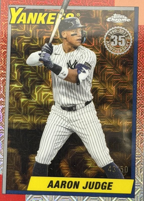 This card is 1 of 18 Aaron Judge's card variations in the 2025 Topps Update Silver Pack set being tracked by Sports Card Investor, including 1990 Chrome, 1990 Chrome Autographs /299, 1990 Chrome Autographs - Purple Refractor /250, 1990 Chrome - Purple Refractor /250, and 1990 Chrome Autographs - Blue Refractor /150.