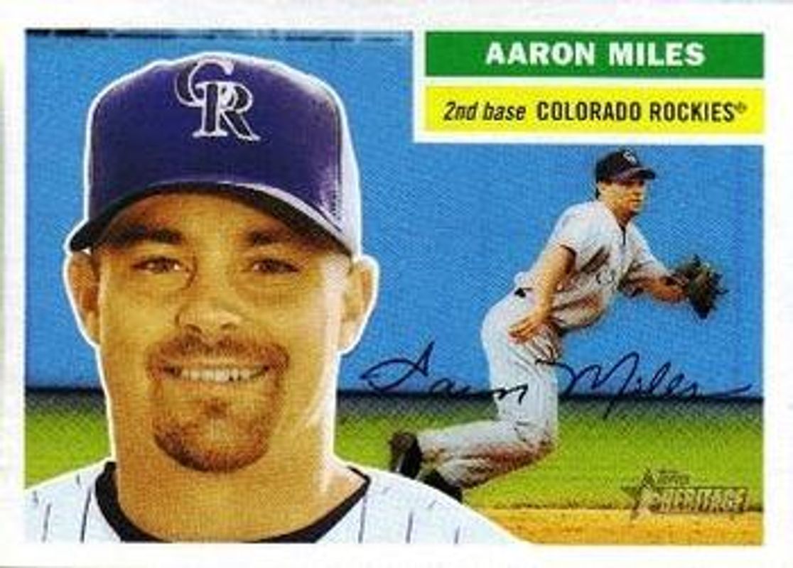 The Aaron Miles 2005 Topps Heritage #239b Base card is 1 of 2 Aaron Miles' card variations in the 2005 Topps Heritage set being tracked by Sports Card Investor, including Base.