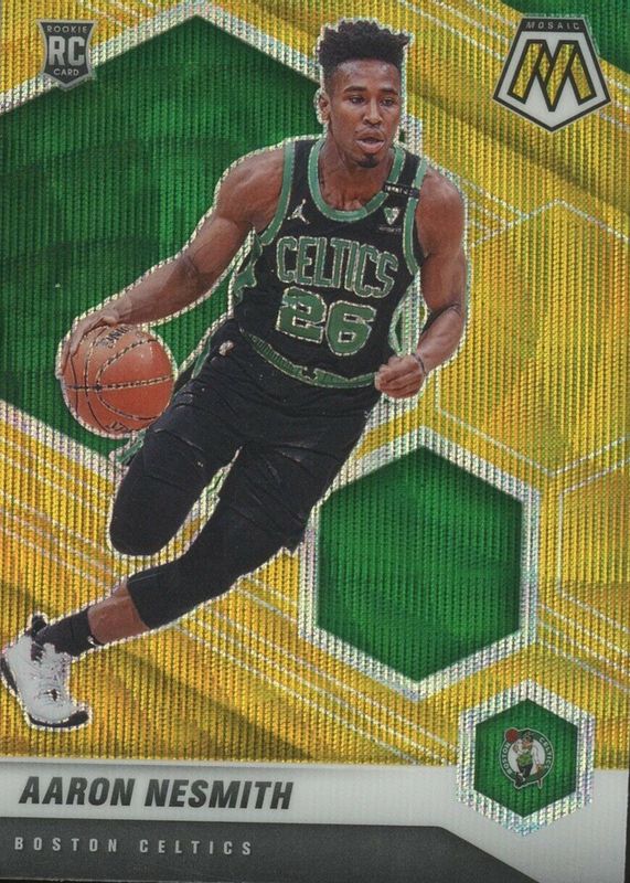 This card is 1 of 58 Aaron Nesmith's card variations in the 2020 Mosaic set being tracked by Sports Card Investor, including Base, Fast Break, Green, Green Ice, and Pink Camo.