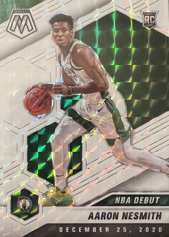 The Aaron Nesmith 2020 Mosaic #279 NBA Debut - White /25 Rookie card in Raw condition has not changed in price in the last 30 days and was last sold for $6.50 .