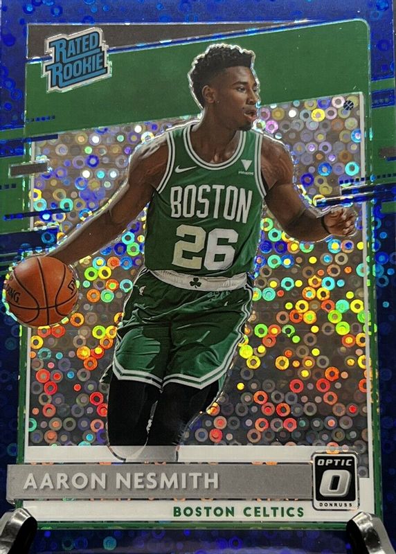 The Aaron Nesmith 2020 Optic #164 Fast Break Blue /50 Rookie card in Raw condition has not changed in price in the last 30 days and was last sold for $14.99 .