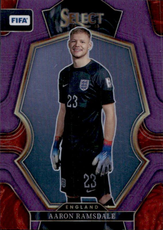 The Aaron Ramsdale 2022 Select FIFA #118 Purple /75 card is 1 of 19 Aaron Ramsdale's card variations in the 2022 Select FIFA set being tracked by Sports Card Investor, including Base, Blue, Checkerboard, Multi Color, and Peacock.