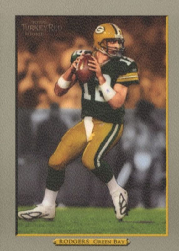 The Aaron Rodgers 2005 Topps Turkey Red #221 Base Rookie card in Raw condition has moved up $0.50 (+3.3%) in the last 30 days and was last sold for $15.50 .