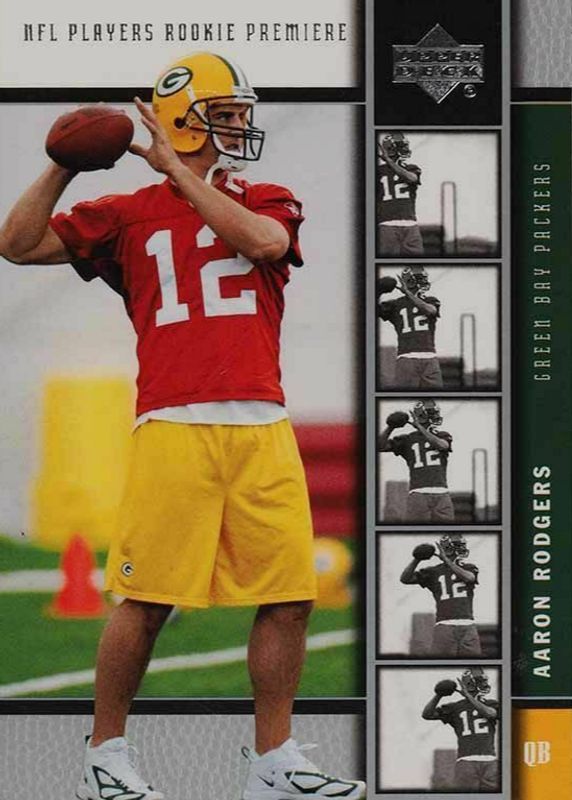 The Aaron Rodgers 2005 Upper Deck Rookie Premiere #16 Base card in Raw condition has moved down -$0.92 (-9.3%) in the last 30 days and was last sold for $9.00 .