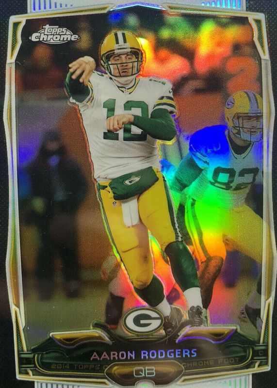 This card is 1 of 15 Aaron Rodgers' card variations in the 2014 Topps Chrome set being tracked by Sports Card Investor, including Base, Blue Wave Refractor, Green Refractor, Orange Refractor, and Pulsar Refractor.