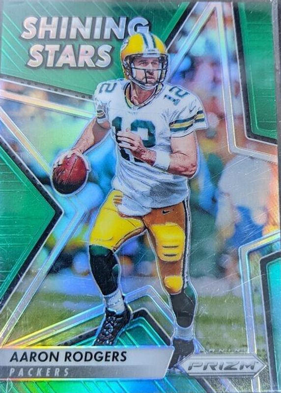 The Aaron Rodgers 2016 Prizm #4 Shining Stars - Green card in Raw condition has not changed in price in the last 30 days and was last sold for $23.24 .
