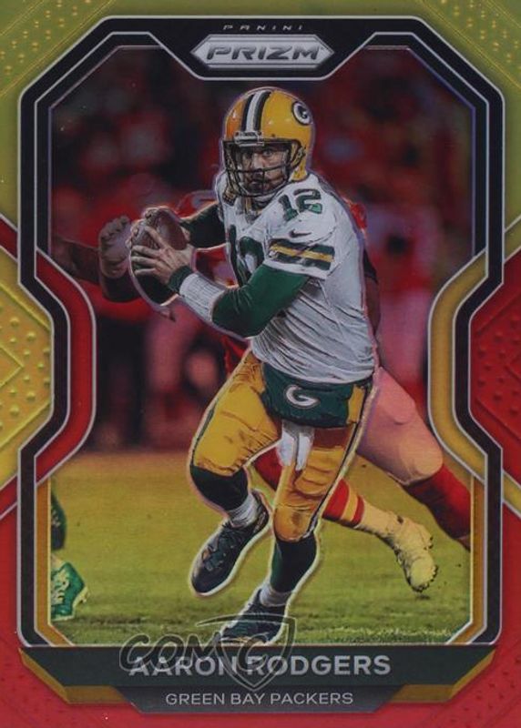 2020 Panini Prizm Aaron Rodgers #206 Red & Yellow Prizm /49