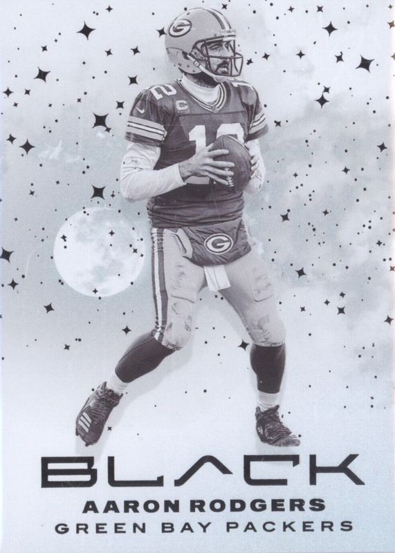 This card is 1 of 3 Aaron Rodgers' card variations in the 2021 Black set being tracked by Sports Card Investor, including ForceField /(SSP), and Regulators /(SSP).