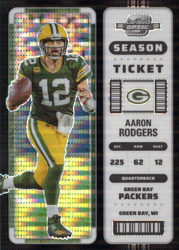Aaron Rodgers 2022 Contenders Optic #23 Black Pulsar /5 RAW Price Guide