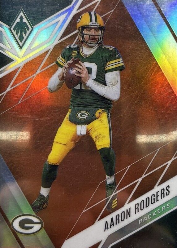 This card is 1 of 20 Aaron Rodgers' card variations in the 2022 Phoenix set being tracked by Sports Card Investor, including Onyx (/5), Red Mojo (/10), Purple Lazer /99, Orange Lazer /75, and Yellow /75.