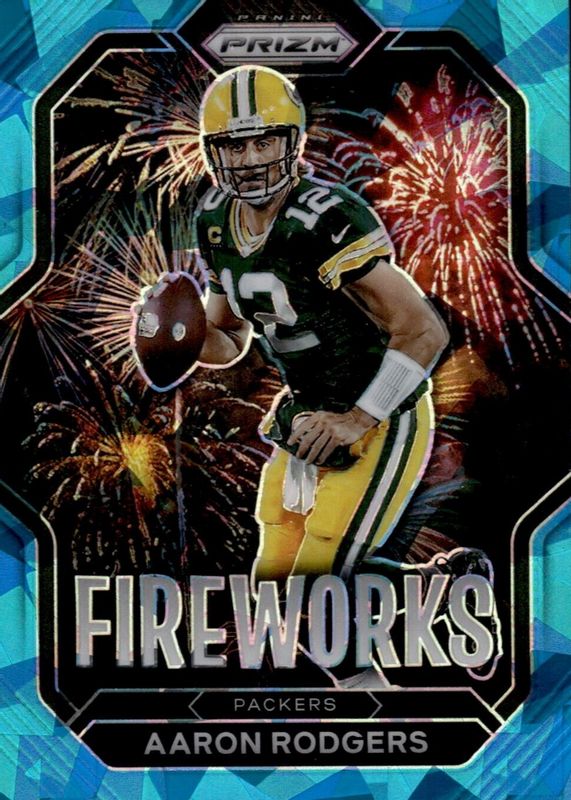 2022 Panini Prizm Aaron Rodgers Fireworks Blue Ice Prizm #/99 Packers