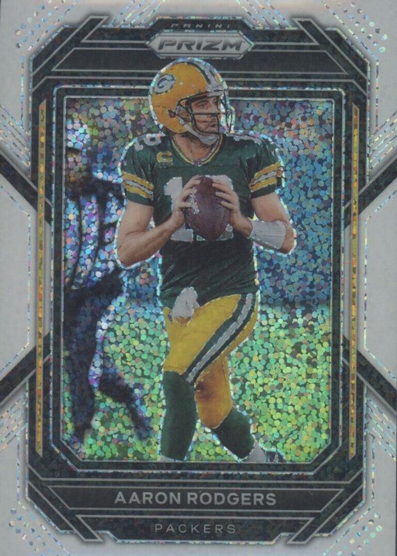 This card is 1 of 44 Aaron Rodgers' card variations in the 2022 Prizm set being tracked by Sports Card Investor, including Pandora /400, Orange /249, Purple Ice /225, Blue Wave /199, and Hyper /175.