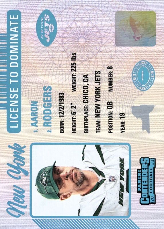 This card is 1 of 2 Aaron Rodgers' card variations in the 2023 Contenders set being tracked by Sports Card Investor, including Crown Jewels /(SSP).