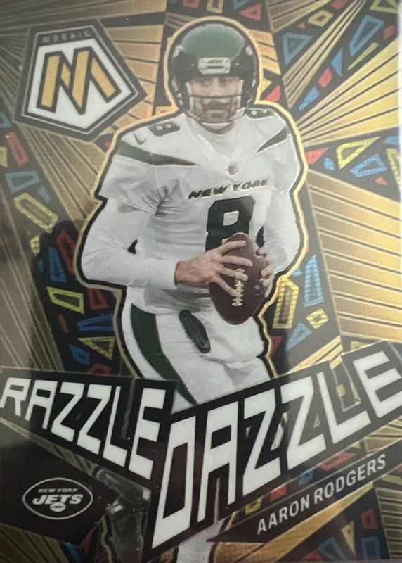 2023 Panini Mosaic AARON RODGERS Razzle Dazzle SSP Case Hit New York Jets