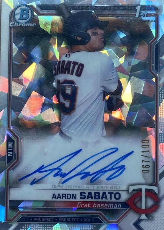 2021 Bowman Chrome Aaron Sabato CPA-AS 1st Atomic Refractor Auto #067/100 Twins