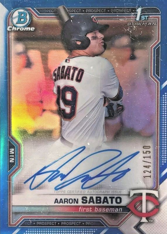 2021 Bowman Chrome 1st Aaron Sabato Blue Refractor Auto 108/150 Twins ROOKIE RC