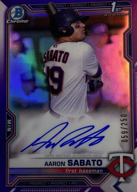 AARON SABATO 2021 BOWMAN CHROME PURPLE REFRACTOR TWINS ROOKIE RC AUTO 91/250