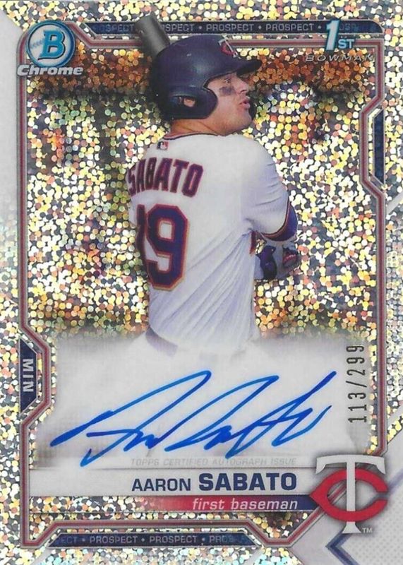Aaron Sabato 2021 Bowman Chrome 1st Auto Speckle Refractor /299 Twins
