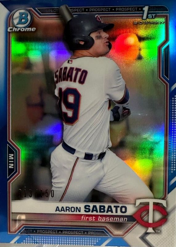 2021 Bowman Chrome Aaron Sabato Blue Refractor 1st Prospect #/150 Twins BCP-125