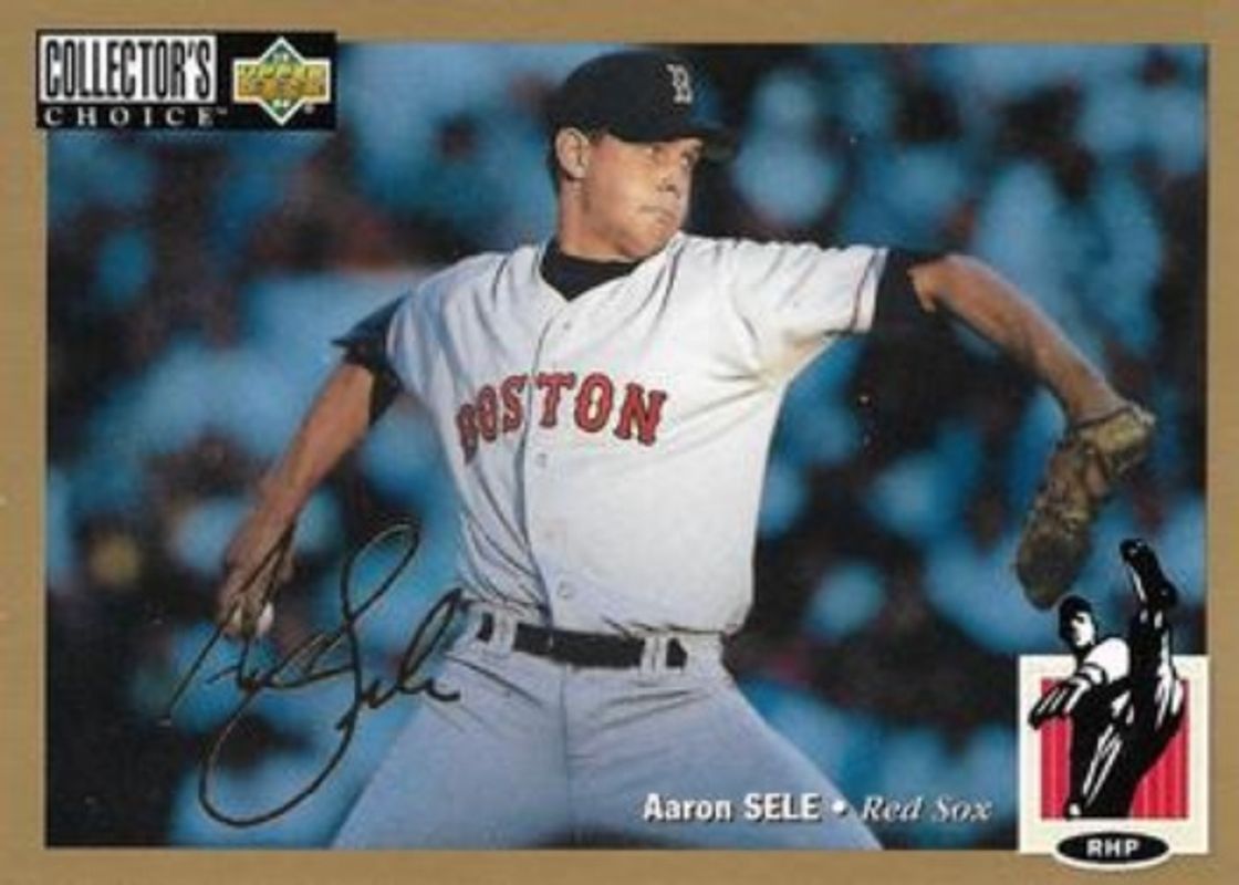 The Aaron Sele 1994 Upper Deck Collector's Choice #255 Gold Signatures card is 1 of 3 Aaron Sele's card variations in the 1994 Upper Deck Collector's Choice set being tracked by Sports Card Investor, including Base, and Silver Signatures.