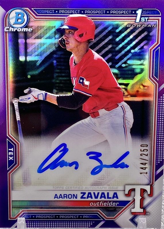 AARON ZAVALA 2021 1st Bowman Chrome Draft Purple Refractor Auto /250 RC Rangers