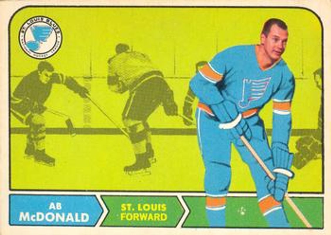 The Ab McDonald 1968 O-Pee-Chee #107 Base card is 1 of 2 Ab McDonald's card variations in the 1968 O-Pee-Chee set being tracked by Sports Card Investor, including Base.