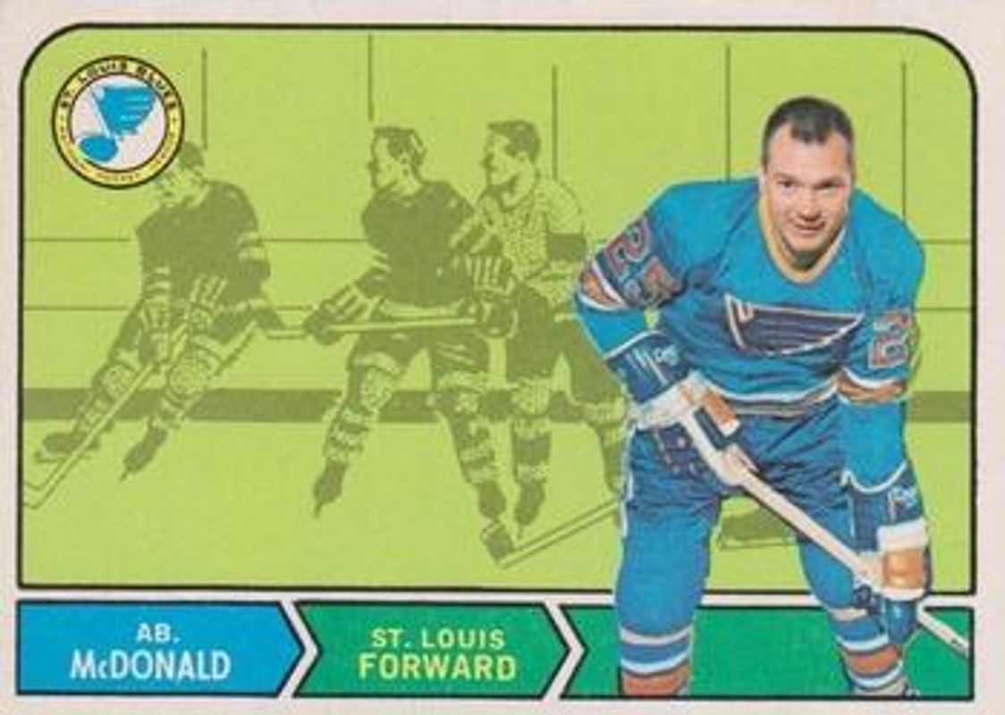 The Ab McDonald 1968 O-Pee-Chee #180 Base card is 1 of 2 Ab McDonald's card variations in the 1968 O-Pee-Chee set being tracked by Sports Card Investor, including Base.
