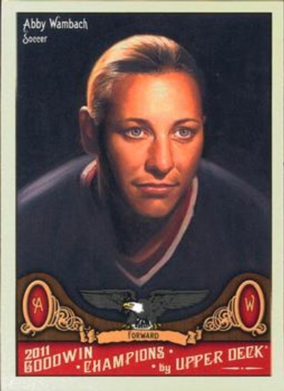 The Abby Wambach 2011 Upper Deck Goodwin Champions #14 Base card is 1 of 12 Abby Wambach's card variations in the 2011 Upper Deck Goodwin Champions set being tracked by Sports Card Investor, including Mini, Mini Foil, Mini Black /49, Mini Foil Magician Black /9, and Mini Foil Presidential Gold /1.