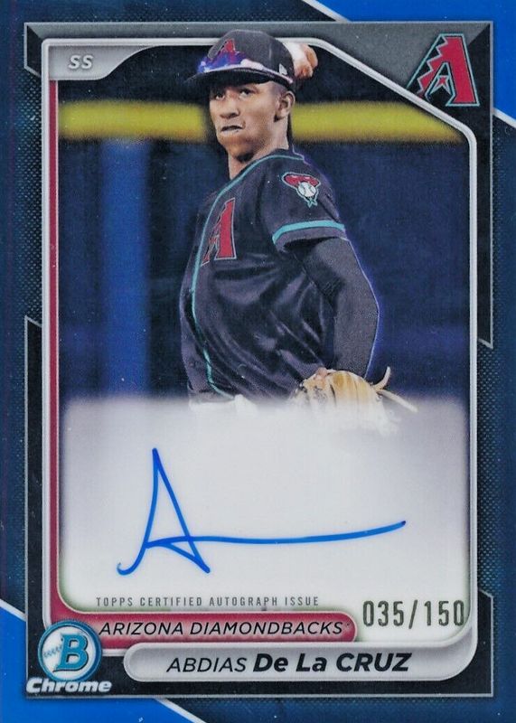 Best Prices Available For Sale of Abdias De La Cruz 2024 Bowman Chrome #CPA-ADL Prospect Auto - Blue Refractor /150