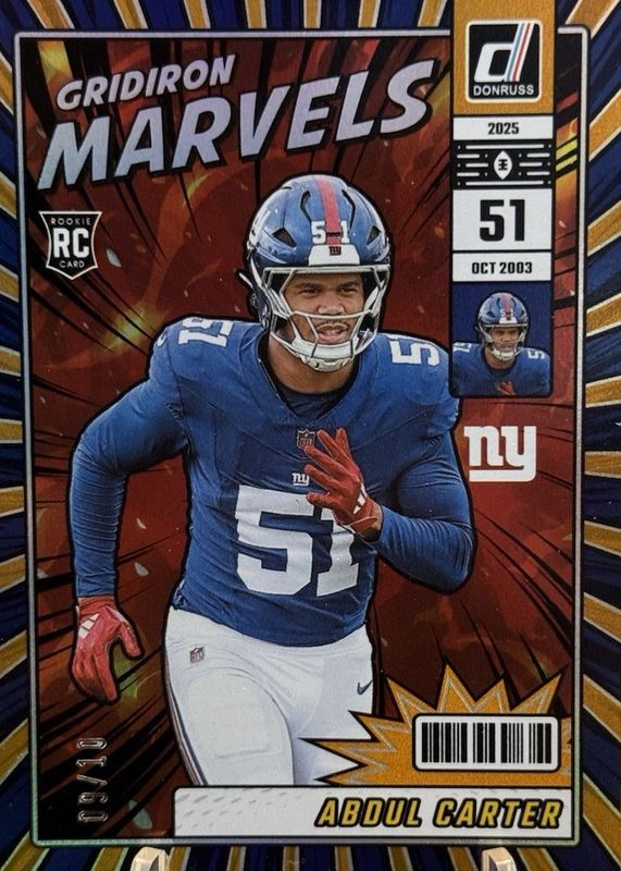 Abdul Carter 2025 Donruss #20 Gridiron Marvels - Gold /10 Rookie RAW Price Guide