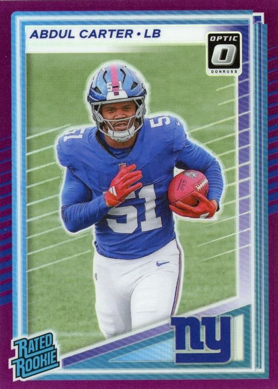 Abdul Carter 2025 Donruss #315 Optic Preview - Purple /50 Rookie RAW Price Guide