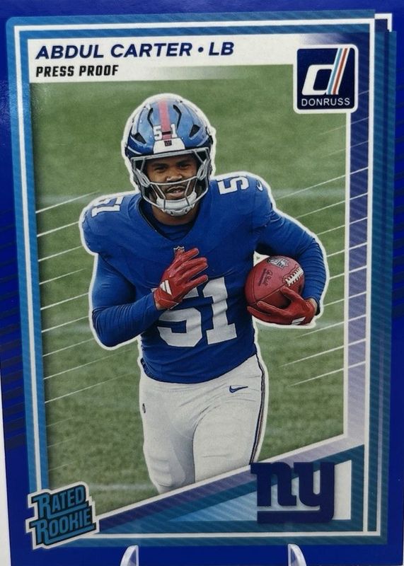2025 Panini Donruss Abdul Carter RC Blue Press Proof Rated Rookie 315 NY Giants