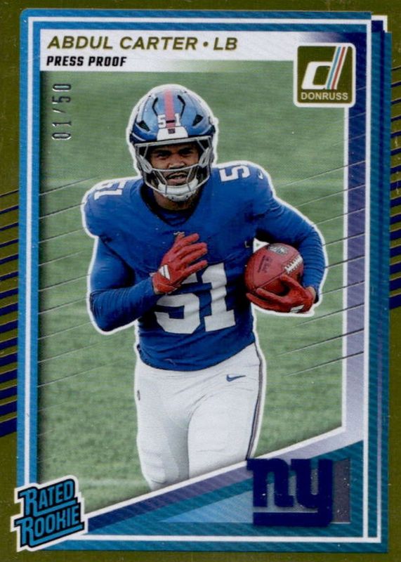 Abdul Carter 2025 Donruss #315 Press Proof Gold /50 Rookie RAW Price Guide