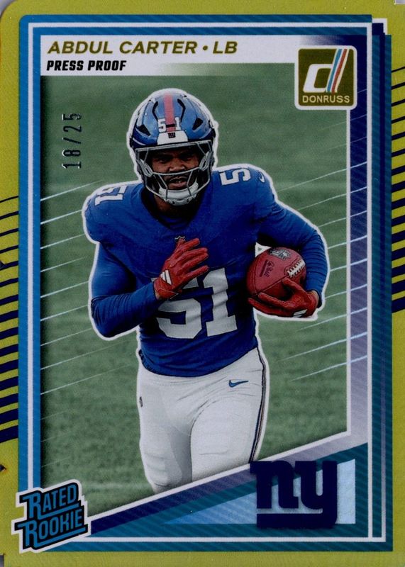 Abdul Carter 2025 Donruss #315 Press Proof Gold Die-Cut /25 Rookie RAW Price Guide