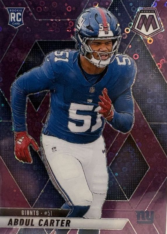 Abdul Carter 2025 Mosaic #317 No Huddle Purple /50 Rookie RAW Price Guide