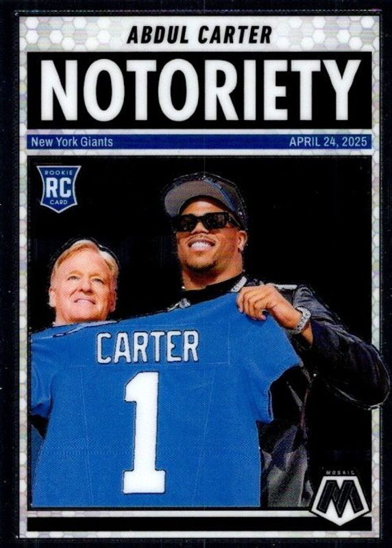 Abdul Carter 2025 Mosaic Football Notoriety Rookie Card Number 14