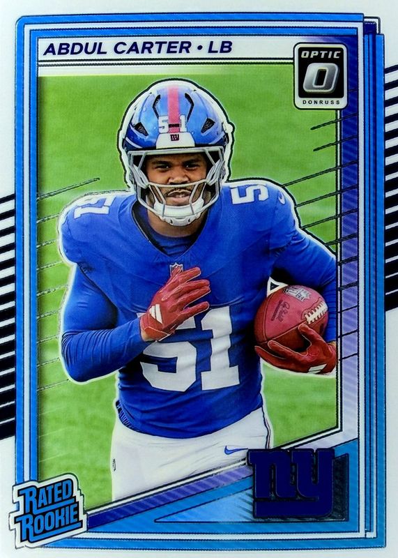 The Abdul Carter 2025 Optic #300 Base Rookie card in Raw condition has moved down -$0.24 (-16.1%) in the last 30 days and was last sold for $1.25 .
