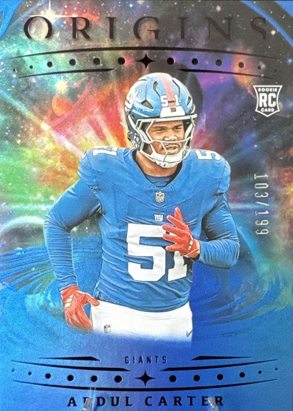 2025 Panini Origins Abdul Carter RC Holo Blue /199 New York Giants DE #112