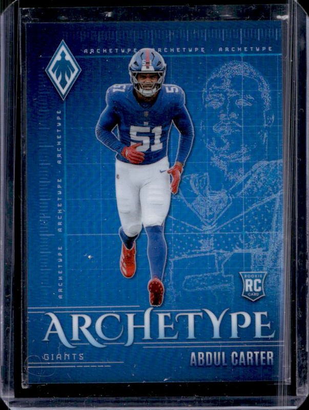The Abdul Carter 2025 Phoenix #17 Archetype /(SSP) Rookie card is 1 of 110 Abdul Carter's card variations in the 2025 Phoenix set being tracked by Sports Card Investor, including Base, Silver, Silver Hyper, Silver Lava, and Silver Lazer.