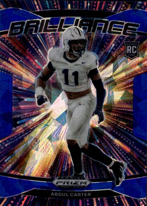 The Abdul Carter 2025 Prizm Draft Picks #1 Brilliance - Blue Ice /149 Rookie card in Raw condition has moved down -$1.99 (-33.2%) in the last 30 days and was last sold for $4.00 .