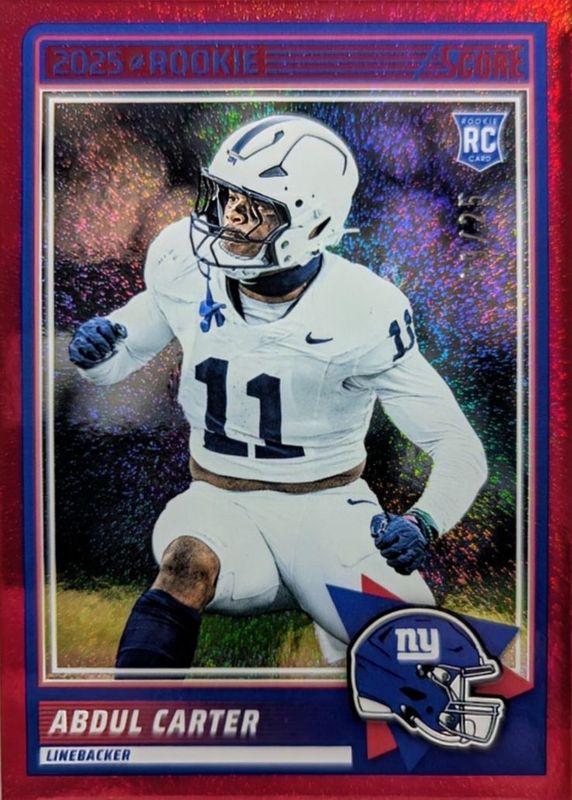 This card is 1 of 27 Abdul Carter's card variations in the 2025 Score set being tracked by Sports Card Investor, including Base, Gold, Green, Orange, and Purple.