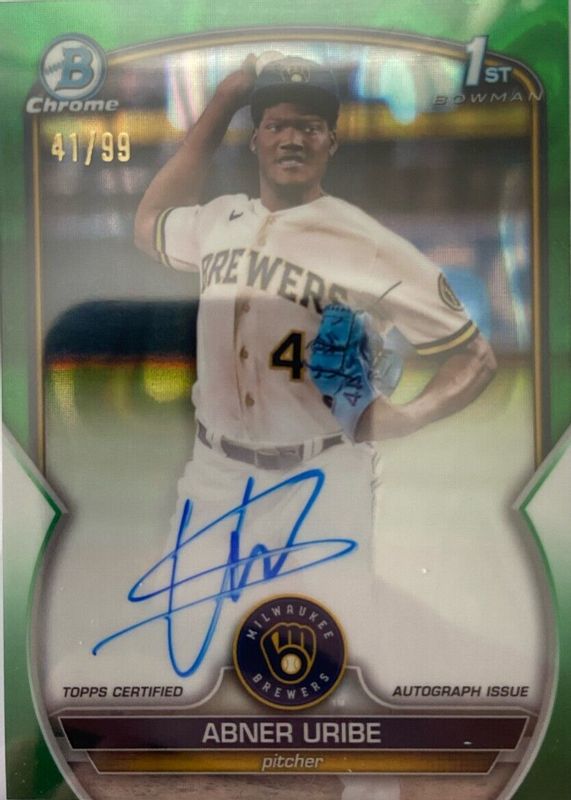 2023 Bowman Chrome ABNER URIBE 1st Green Lava Chrome Refractor Auto #/99 Brewers