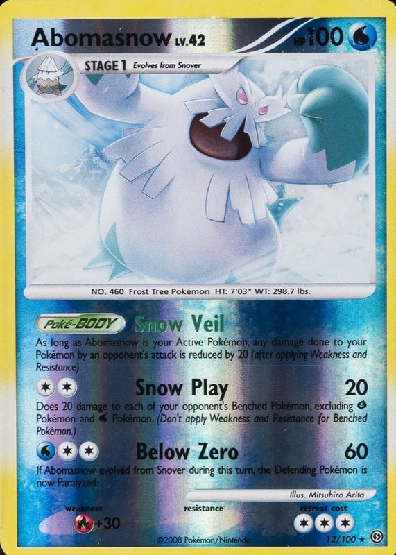 Abomasnow 2008 Diamond & Pearl: Stormfront #012/100 Reverse Holo RAW TCG (LIGHTLY PLAYED) Price Guide
