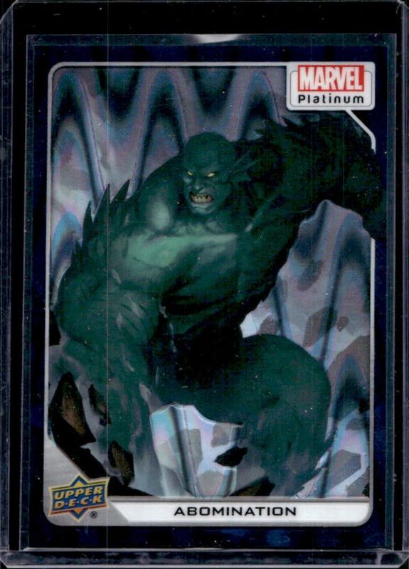 The Abomination 2023 Upper Deck Marvel Platinum #81 Teal Wave /799 card is 1 of 41 Abomination's card variations in the 2023 Upper Deck Marvel Platinum set being tracked by Sports Card Investor, including Base, Black Rainbow, Blue Rainbow, Blue Surge, and Purple Rainbow.