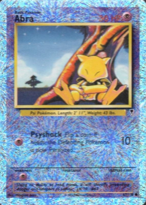 The Abra 2002 Legendary Collection #67 Reverse Holo card in Raw TCG (Near Mint) condition has moved down -$35.00 (-28.0%) in the last 30 days and was last sold for $90.00 .