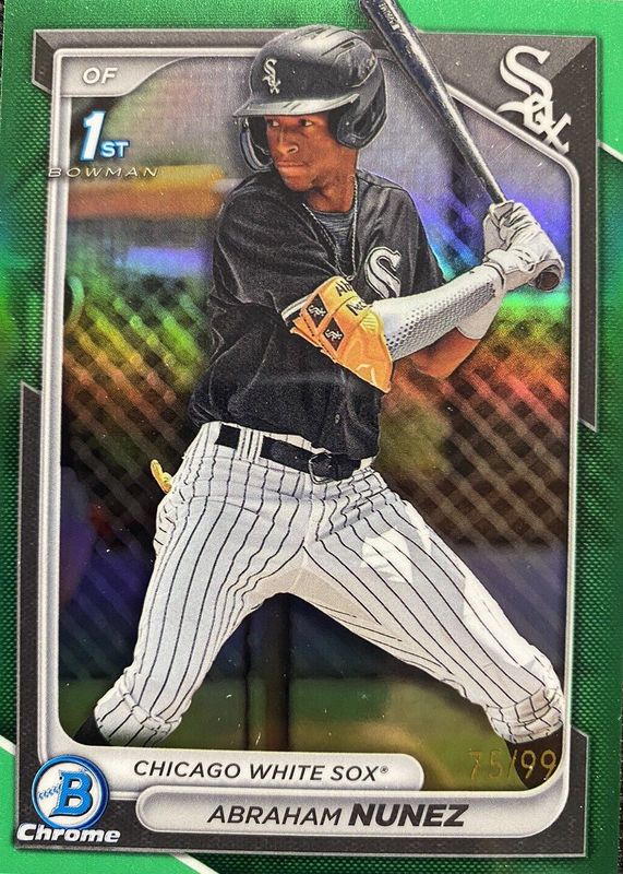 2024 Abraham Nunez Bowman Chrome True Green Refractor 75/99 White Sox 1st Bowman