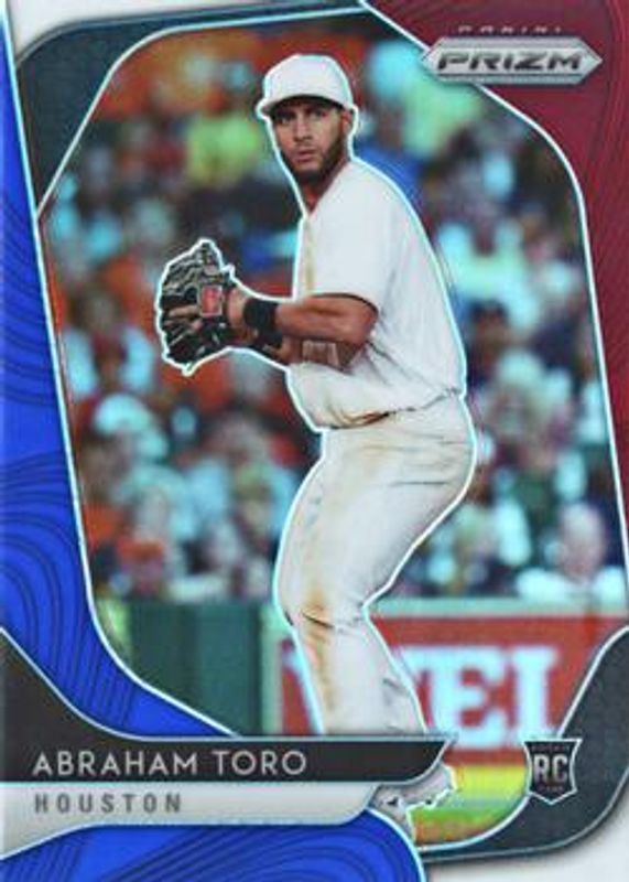 The Abraham Toro 2020 Prizm #97 Red White Blue Rookie card is 1 of 61 Abraham Toro's card variations in the 2020 Prizm set being tracked by Sports Card Investor, including Base, Blue, Carolina Blue, Cosmic Haze, and Green.